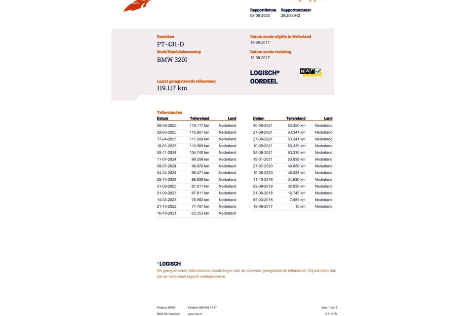 Huidige stand 119.117km