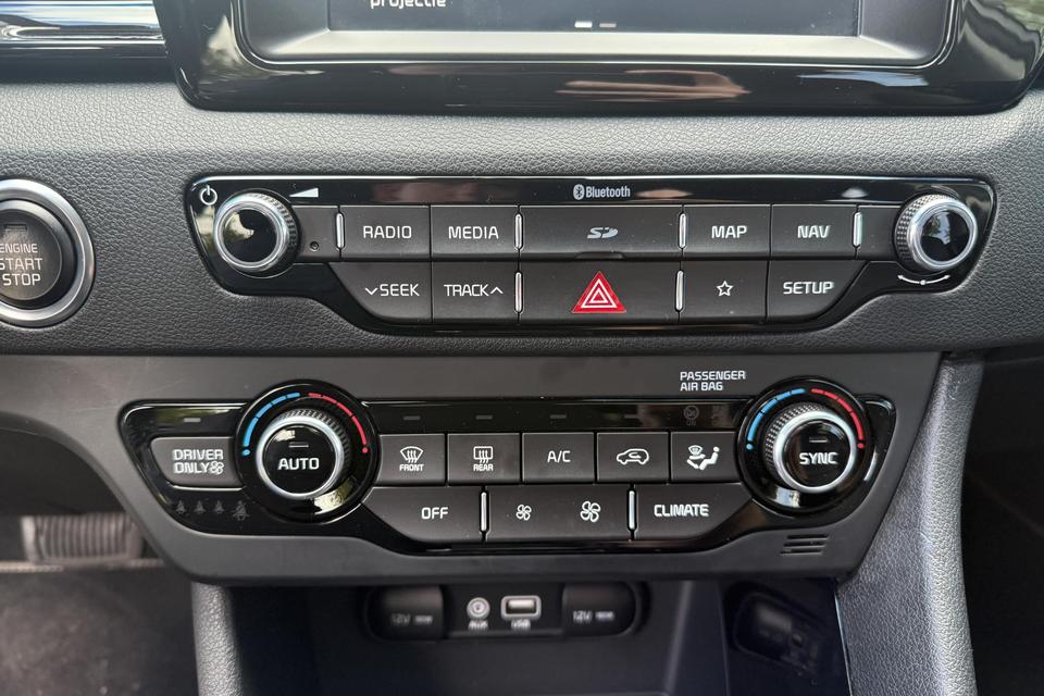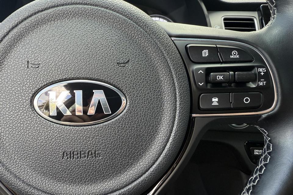 Achteruitrijden en inparkeren worden een eitje dankzij de achteruitrijcamera. Met adaptive cruise control houdt de auto zelfstandig afstand tot uw voorligger. Een veiligheidsverhogende optie waarmee u comfortabel onderweg bent. Kies de muziek waarvan u houdt, dankzij de DAB-radio klinkt het altijd geweldig. Intussen bedient u het audiosysteem en het full map navigatiesysteem met de knoppen op het stuur. Het comfort wordt verhoogd door de aanwezige electronic climate control. Achter het stuur van deze Kia bent u niet alleen. De auto kijkt als het ware met u mee tijdens de rit. De regensensor schakelt de ruitenwissers in als het nodig is en de automatisch inschakelbare verlichting doet de lichten voor u aan. En dan is deze auto ook nog eens voorzien van keyless entry en automatisch dimmende binnenspiegel.