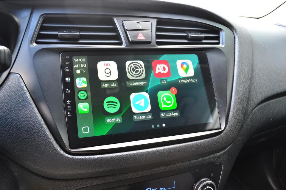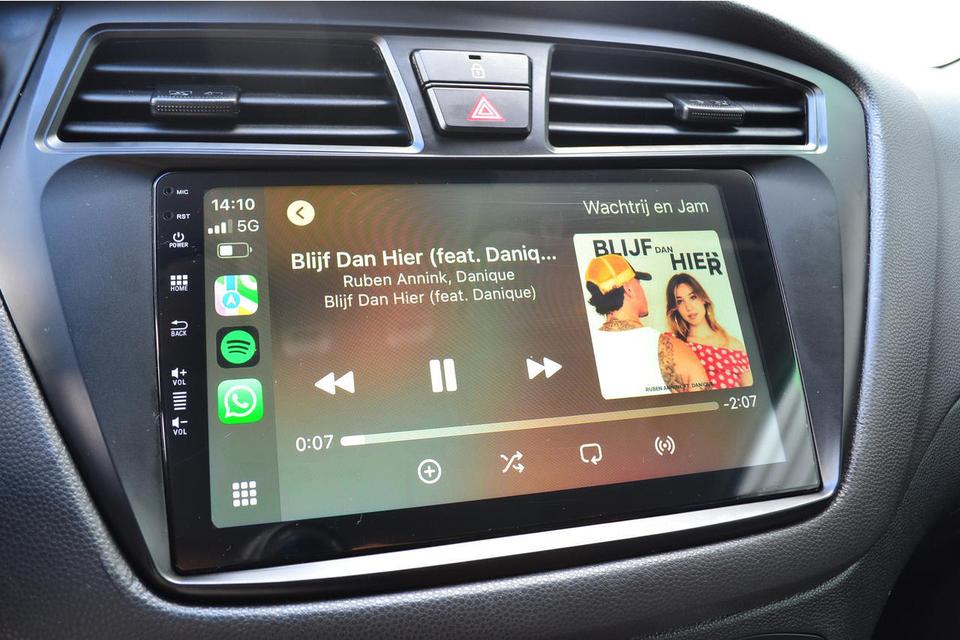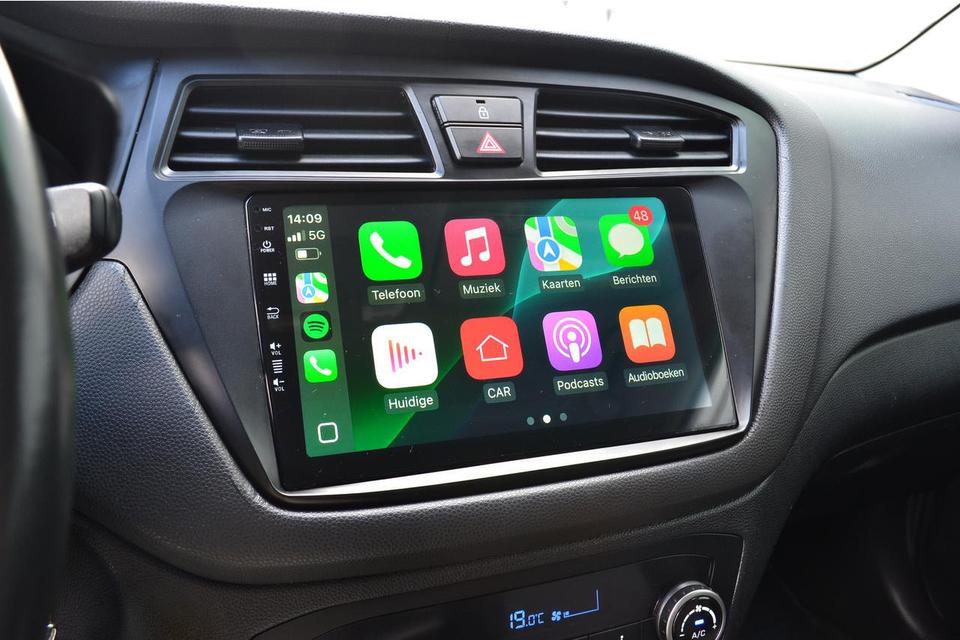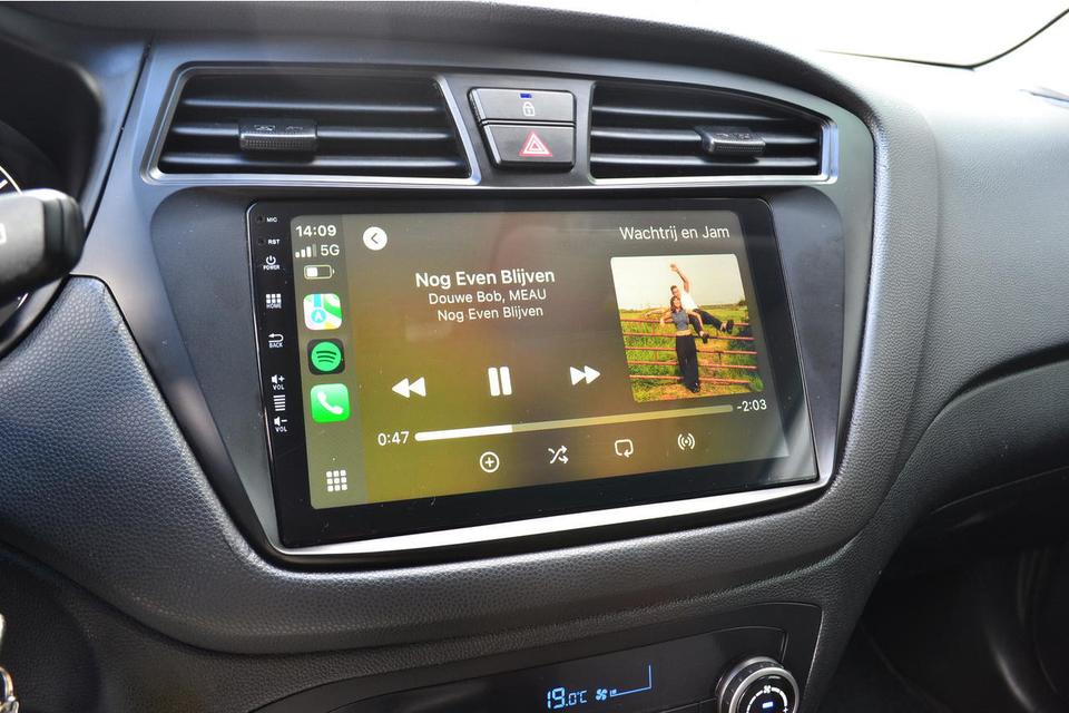 Deze Hyundai i20 is voorzien van een multimedia systeem waar Apple Carplay of Android Auto gebruikt kan worden . Om zo te navigeren met Google Maps of muziek te beluisteren via Spotify .