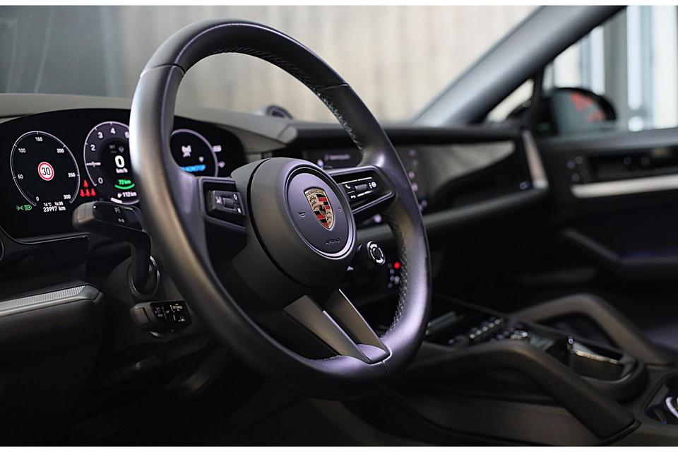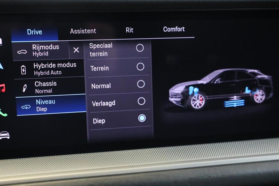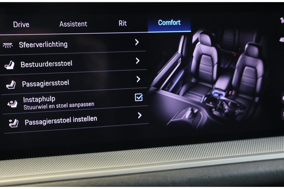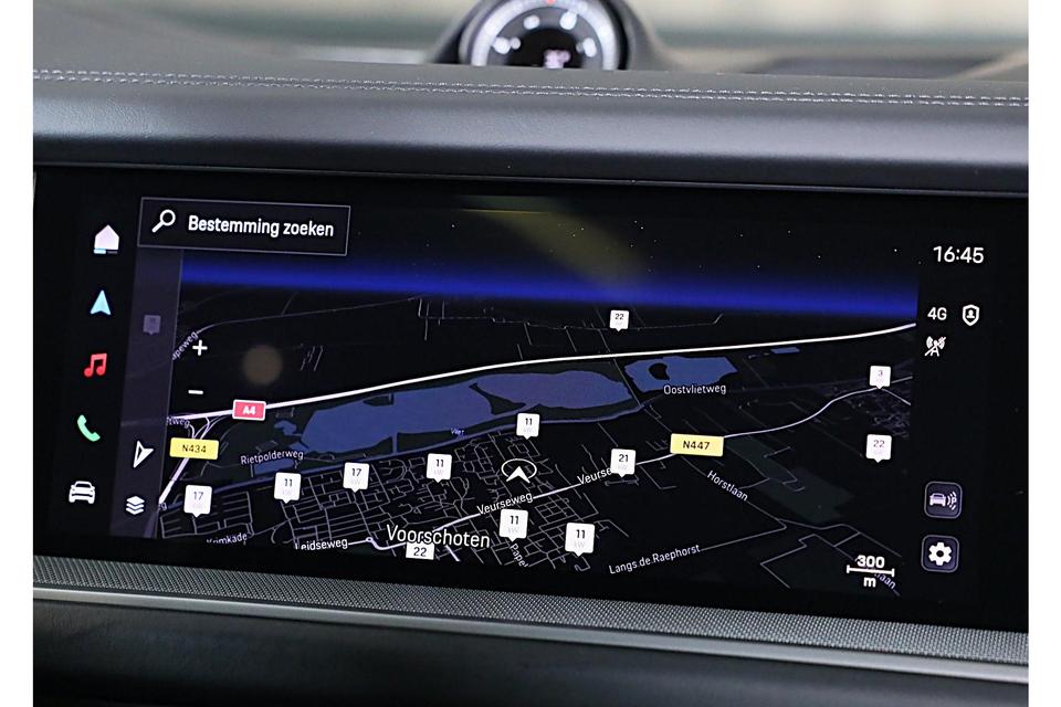 Dankzij het digitale dashboard in deze auto kan u de interface van uw cockpit personaliseren. De functie van deze 360 graden camera is vooral nuttig in smalle straatjes waar het zicht beperkt is. Adaptive cruise control is veilig en comfortabel. De snelheidsregelaar houdt automatisch afstand tot het voertuig dat voor u rijdt. Als u regelmatig met een aanhanger of een fietsendrager op pad bent, is de afneembare trekhaak een praktische extra. Veilig en comfortabel rijden wordt nog eens versterkt door Connected Services, zodat u diverse vitale functies van de auto altijd kunt checken in de app. Ook is de Porsche uitgerust met: dashboard met spraakbediening, elektrisch inklapbare trekhaak, Bose-audioinstallatie, navigatiesysteem, automatische airconditioning en F1-schakelflippers op het stuurwiel.