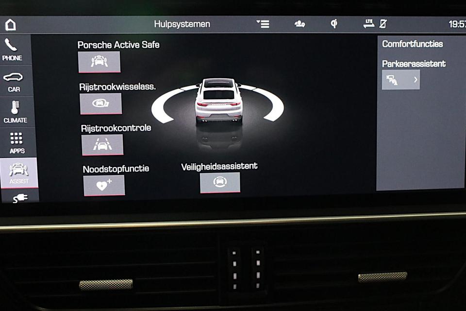 De kracht van de 360 graden camera op deze auto resulteert in optimale zichtbaarheid en veiligheid. Als u de adaptive cruise control inschakelt, regelt de auto zelf de snelheid en de afstand tot de auto voor u. Met de ingebouwde spraakbediening kunt u de belangrijkste voertuigsystemen bedienen met stemcommando's. Eén druk op de knop en de elektrisch inklapbare trekhaak verdwijnt uit het zicht. Connected Services zorgen ervoor dat de belangrijkste functies en data van de auto altijd en overal te checken zijn. Gewoon via de app op de smartphone. De Porsche is standaard voorzien van: Bose-audioinstallatie, navigatiesysteem met harde schijf, automatische airconditioning, F1-schakelflippers op het stuurwiel, regensensor en keyless entry.