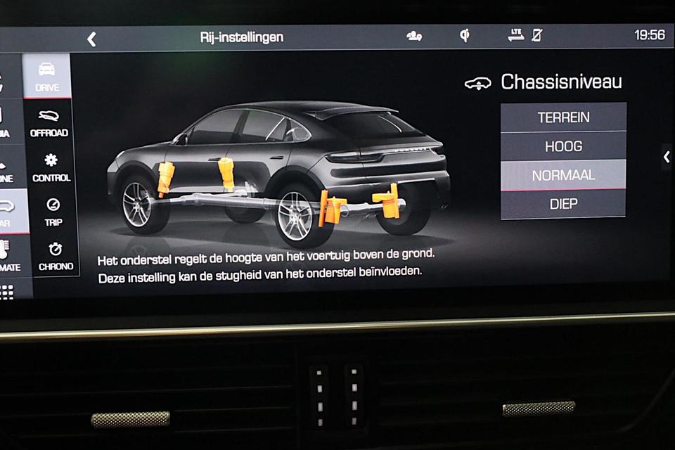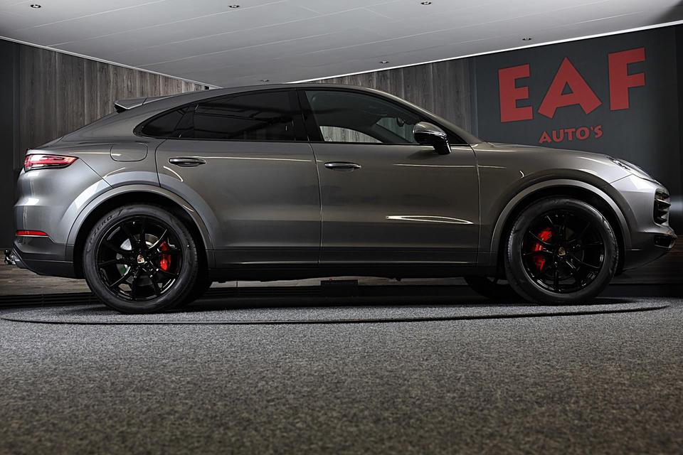 Een auto als de Porsche Cayenne Coupé biedt een dynamiek en comfort die typerend zijn voor de producten van de Duitse autofabrikanten. De uitstekende prestaties van deze auto komen van de zescilinder motor en de automatische transmissie. Wel eens luchtvering ervaren? Deze auto biedt elke keer een rimpelloze rit. Binnenin zien we een fraai afgewerkt lederen interieur. Neem plaats op de comfortabele stoelen. Dankzij de elektrische bediening en het geheugen is het eenvoudig om hierin de beste zitpositie te vinden. Een handige voorziening op deze auto is de elektrische achterklep die u op afstand kunt openen. Het verfijnde karakter van deze open auto komt ook tot uiting in het elektrisch bedienbare cabriodak. Vergezichten krijgen een extra dimensie door het glazen panoramadak. In deze auto profiteert u onder andere ook van: 21 inch lichtmetalen velgen, LED koplampen, warmtewerend glas, trailer assistent, zwarte hemelbekleding en dakspoiler.