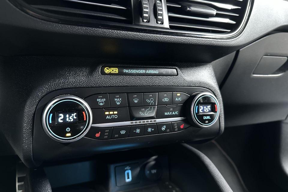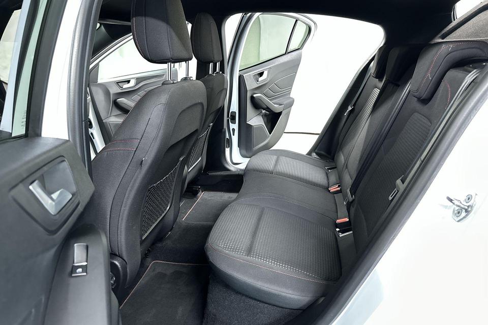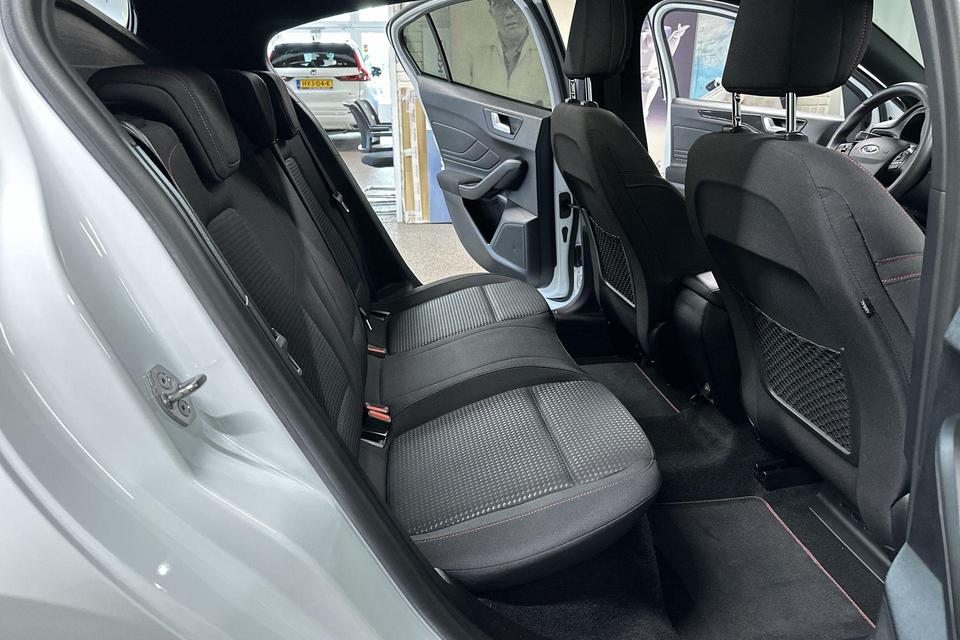 Zoals u mag verwachten van deze Ford Focus is hij uitgerust met een reeks aan actieve veiligheidssystemen. Deze Ford Focus is ook behulpzaam als het gaat om een rechte koers. Het Lane-keeping systeem signaleert en corrigeert als u onbedoeld de rijstrooklijnen dreigt te overschrijden. Het forward collision warning-systeem is constant alert en detecteert via sensor de afstand tot voorliggers. Wordt die te klein, dan volgt een automatische waarschuwing. U bent mede dankzij hill hold functie, brake assist en bandenspanningcontrolesysteem steeds veilig onderweg.