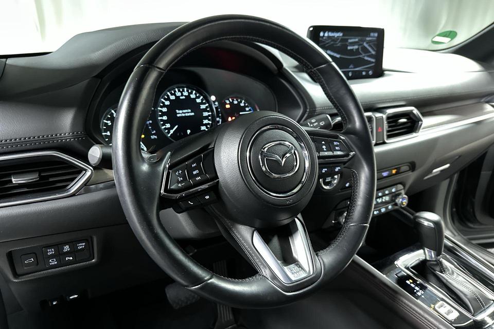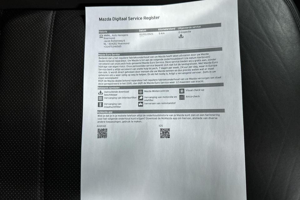 Omdat rijden een plezier mag zijn, staat deze Mazda CX-5 enthousiast te glimmen in de showroom. Technisch in topconditie, strak in de lak... echt een droomauto! De aandrijving van deze Mazda wordt verzorgd door een viercilinder benzinemotor en een automatische transmissie. Basisuitvoering? Niks daarvan! Deze komt met lederen interieur, een elektrisch bediende glazen panorama dak en een elektrisch bedienbare achterklep. U zult absoluut de luxe waarderen van de stoelverwarming, verwarmbare achterbank, en het verwarmbare stuur dat inbegrepen is in dit voertuig. Bij de uitrusting van deze Mazda horen onder meer LED koplampen, dakspoiler, extra getint glas, in delen neerklapbare achterbank, LED-achterlichten en verstelbare lendensteunen.