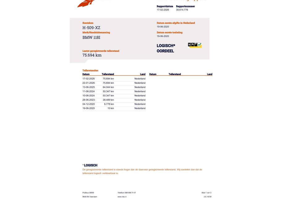 Huidige stand 75.694km