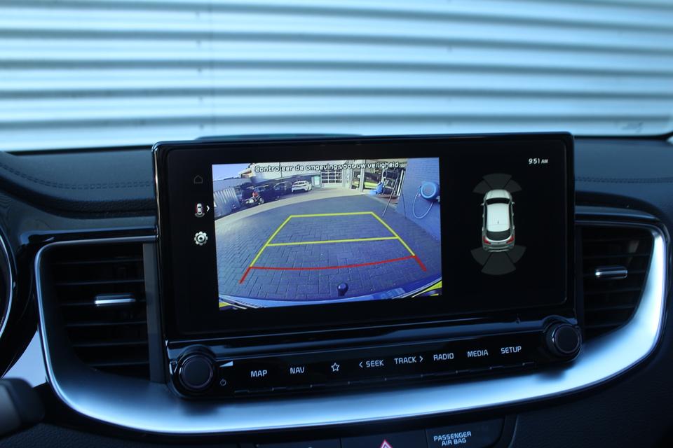 De indeling van het digitale dashboard is zo ingericht dat u met één blik precies weet wat u weten wilt. Omdat u nou eenmaal geen ogen in uw achterhoofd heeft, is het altijd lastig om achteruit te rijden zonder brokken te maken. De achteruitrijcamera lost dat probleem op. Als u de adaptive cruise control inschakelt, regelt de auto zelf de snelheid en de afstand tot de auto voor u. Spraaksturing maakt het eenvoudiger en veiliger om deze auto onderweg te bedienen. Als u regelmatig met een aanhanger of een fietsendrager op pad bent, is de afneembare trekhaak een praktische extra. De uitrusting van deze Kia is met premium audiosysteem, full map navigatiesysteem, automatische airconditioning, draadloos opladen, DAB ontvangst en regensensor behoorlijk compleet.