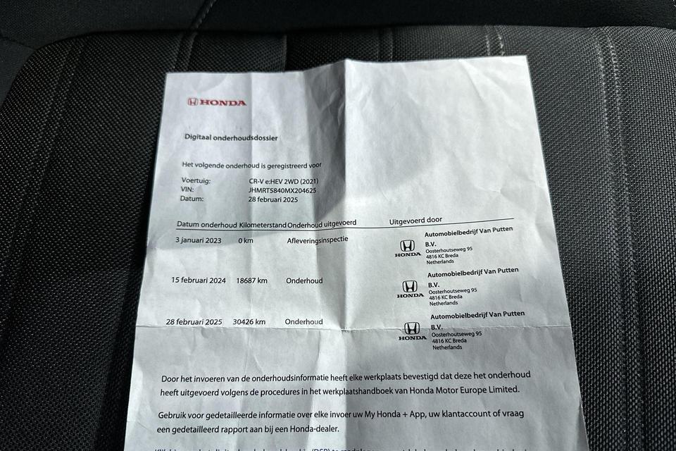 Van uw nieuwe auto verlangt u rijplezier, maar ook optimaal comfort en veiligheid. Daarom is de Honda CR-V de auto die u zoekt. De combinatie van een verbrandingsmotor en een elektromotor zorgt voor prima rij-eigenschappen en een laag brandstofverbruik. Deze Honda CR-V legt bestuurder én bijrijder compleet in de watten met de verwarmbare voorstoelen. U wordt in deze auto ook getrakteerd op 18 inch lichtmetalen velgen, LED koplampen, extra getint glas, in delen neerklapbare achterbank, LED-achterlichten en verstelbare lendensteunen.