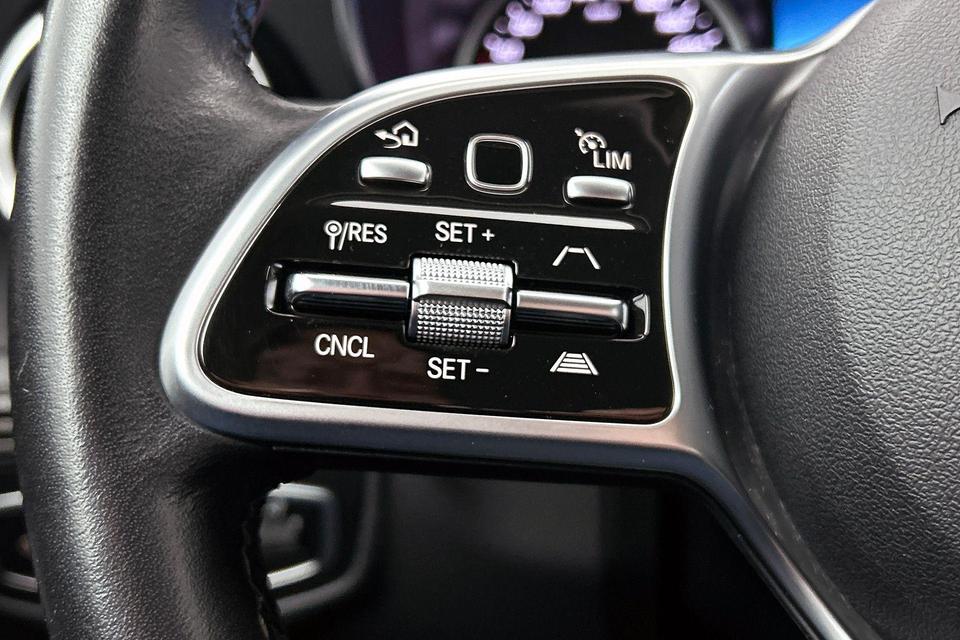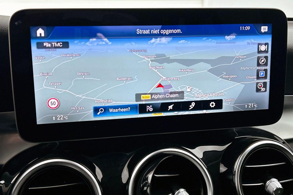 Afstand schatten bij het achteruitrijden? Niet nodig. U weet het precies, dankzij de achteruitrijcamera. Met adaptive cruise control houdt de auto zelfstandig afstand tot uw voorligger. Een veiligheidsverhogende optie waarmee u comfortabel onderweg bent. De radio harder of zachter zetten of iemand uit uw contactenlijst bellen. Dankzij de spraakbediening doet u dit allemaal met uw stem. Dankzij Connected Services weet u precies waar uw auto geparkeerd staat. Ook andere functies, zoals bandenspanning en brandstofniveau, zijn via de app altijd onder handbereik. Altijd een deskundige gids aan boord, dankzij het full map navigatiesysteem. De uitrusting van deze Mercedes-Benz is met kruisend verkeer detectie, automatische airconditioning, sportstuur met schakelpaddels, DAB ontvangst, regensensor en automatisch dimmende buitenspiegels behoorlijk compleet.
