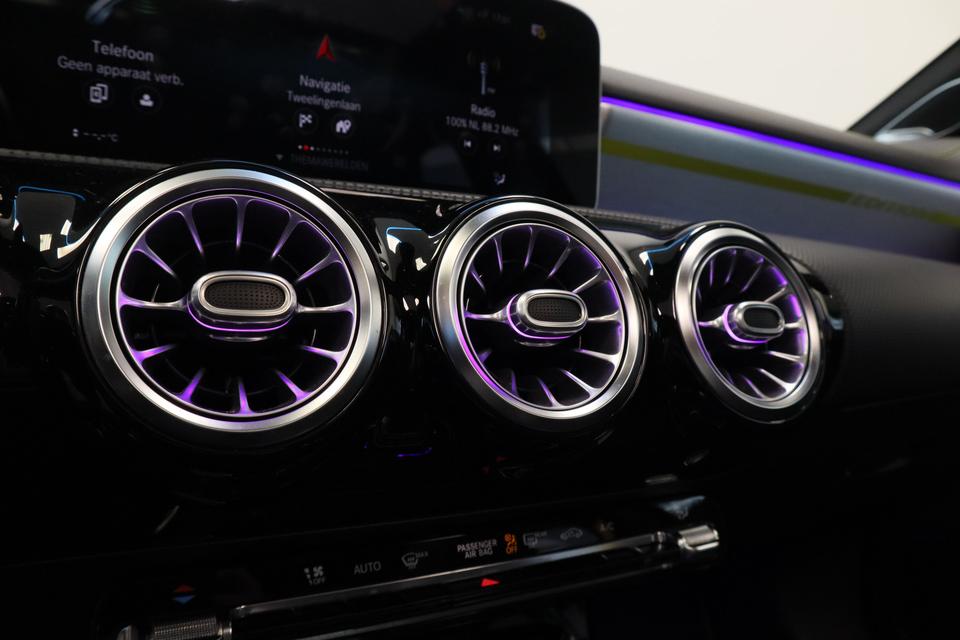 Zoals u mag verwachten van deze Mercedes-Benz A-klasse is hij uitgerust met een reeks aan actieve veiligheidssystemen. Dat de auto steeds meer taken van de bestuurder overneemt, merkt u bijvoorbeeld aan het systeem voor verkeersbord-detectie in deze Mercedes-Benz. Onbedoeld buiten de rijstrook raken wordt voorkomen door het Lane-keeping systeem. Het systeem van forward collision warning, of in gewoon Nederlands 'botswaarschuwing', treedt in werking als de sensor te weinig afstand signaleert met een voor- of tegenligger. Bovenop deze veiligheidsfeatures heeft deze Mercedes-Benz bovendien brake assist en bandenspanningcontrolesysteem.