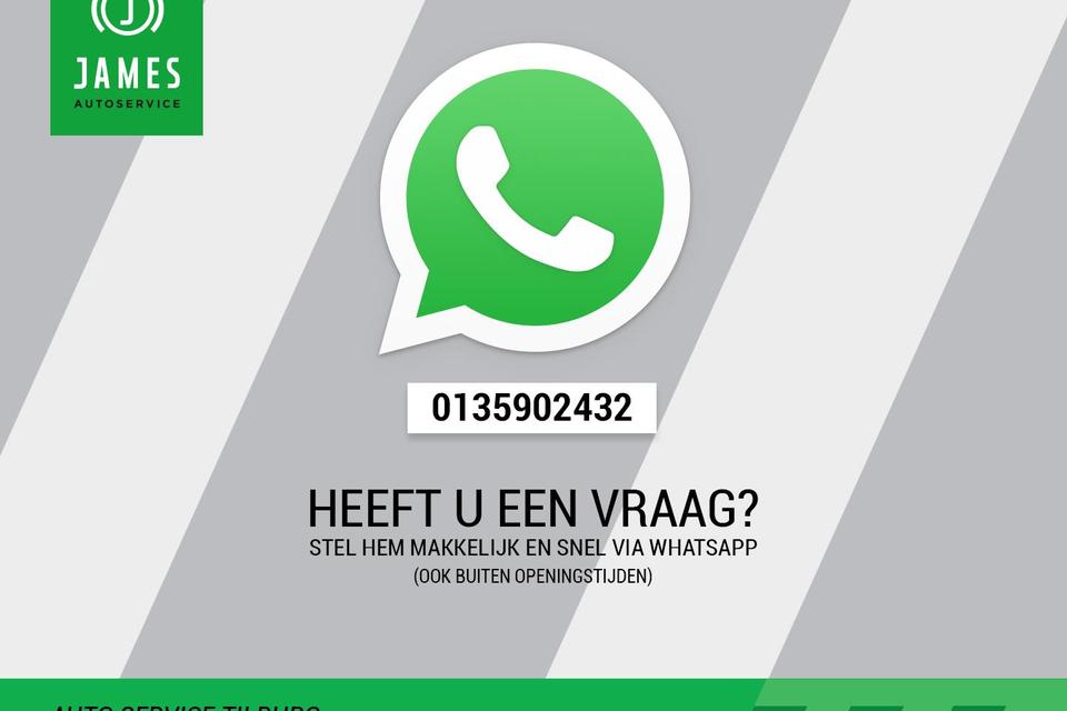 JAMES Autoservice Tilburg is al meer dan 35 jaar een begrip in Tilburg en omgeving. Bezoek onze website www.jamestilburg.nl voor meer informatie over ons bedrijf, ons actuele aanbod, aanvullende foto’s en een 360° video van onze auto’s.